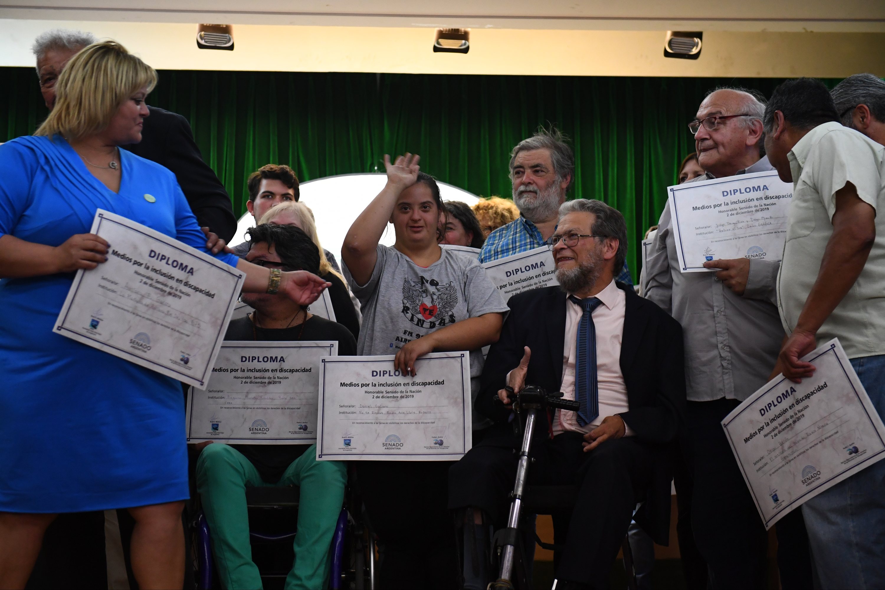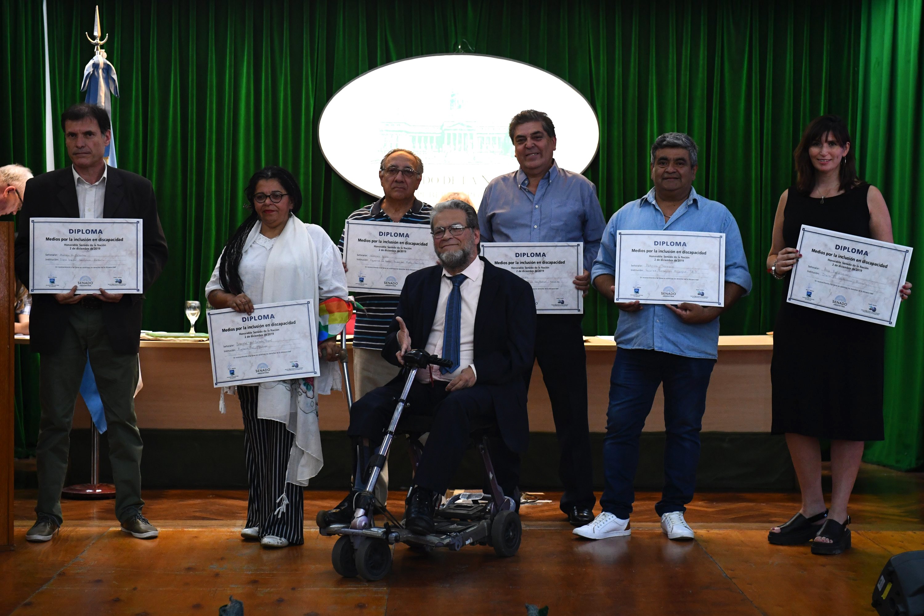 Los galardonados durante el evento «Medios por la inclusión en Discapacidad», realizado en el Honorable Senado de la Nación, organizado por APPA (Asociación Polio Post Polio Argentina) y por la «Red de Observatorios de los derechos de personas con discapacidad»